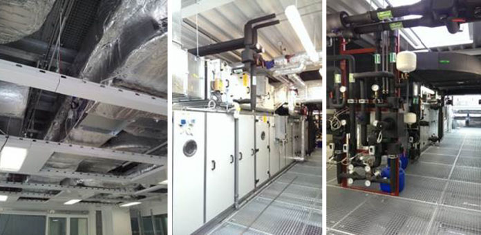 Aus energetischen Gründen erfolgte die Installation einer Umluftanlage mit 20 % Außenluftanteil und einer Wärmerückgewinnung.